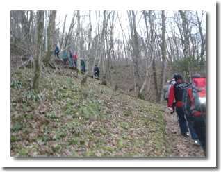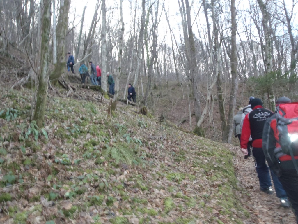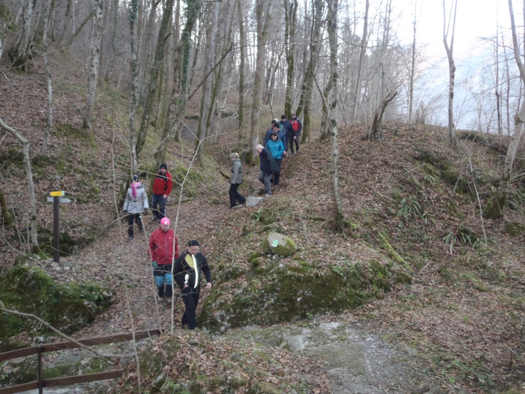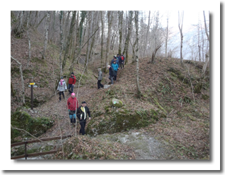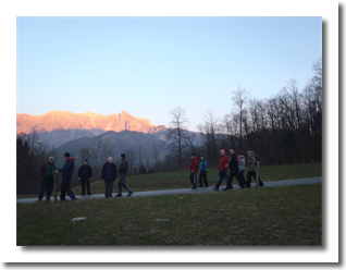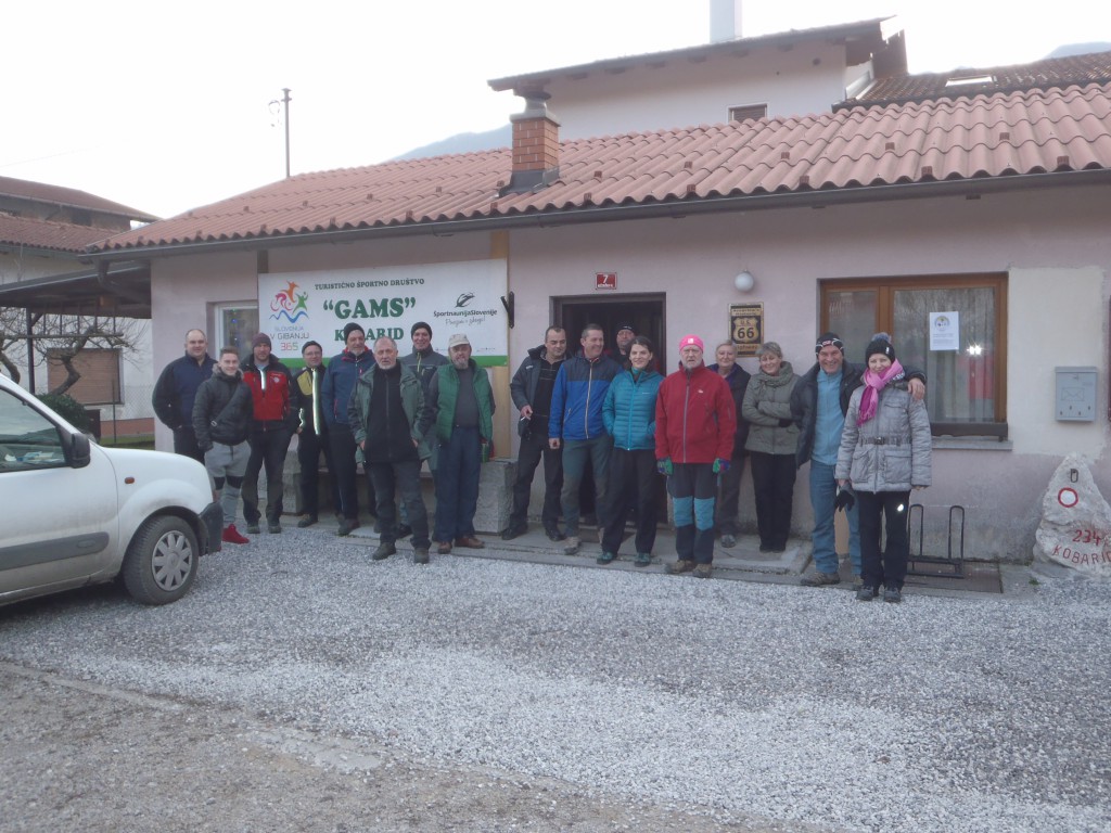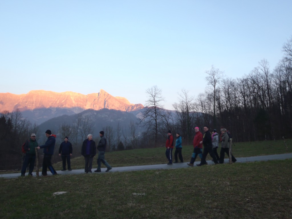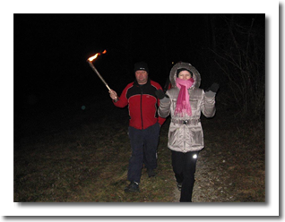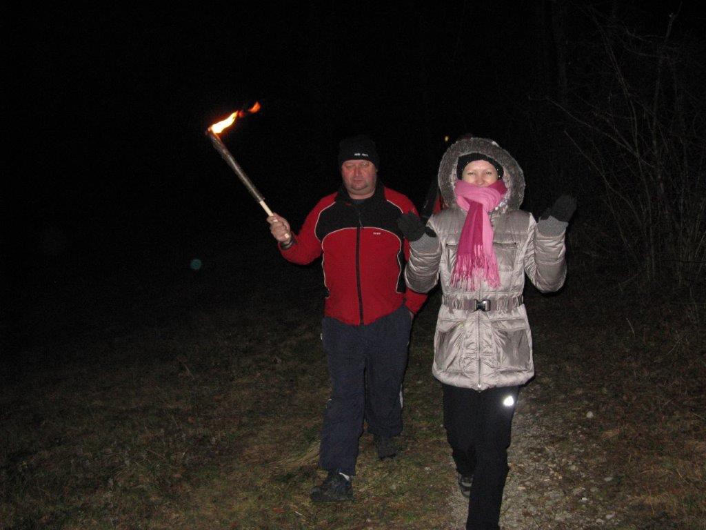 Pot nas je vodila po "Gamsovi poti" mimo razgledne točke pri treh mlinih, do vasi Svino, nato pa čez "Srčni breg" do kampa RUT, kjer smo se okrepčali z čajem. Pot smo nadaljevali z baklami preko kobariškega blata nazaj na "vago". Poskrbljeno je bilo tudi za prigrizek - domače klobase, nato pa smo si ogledali diaprojekcijo aktivnosti društva v preteklem letu.